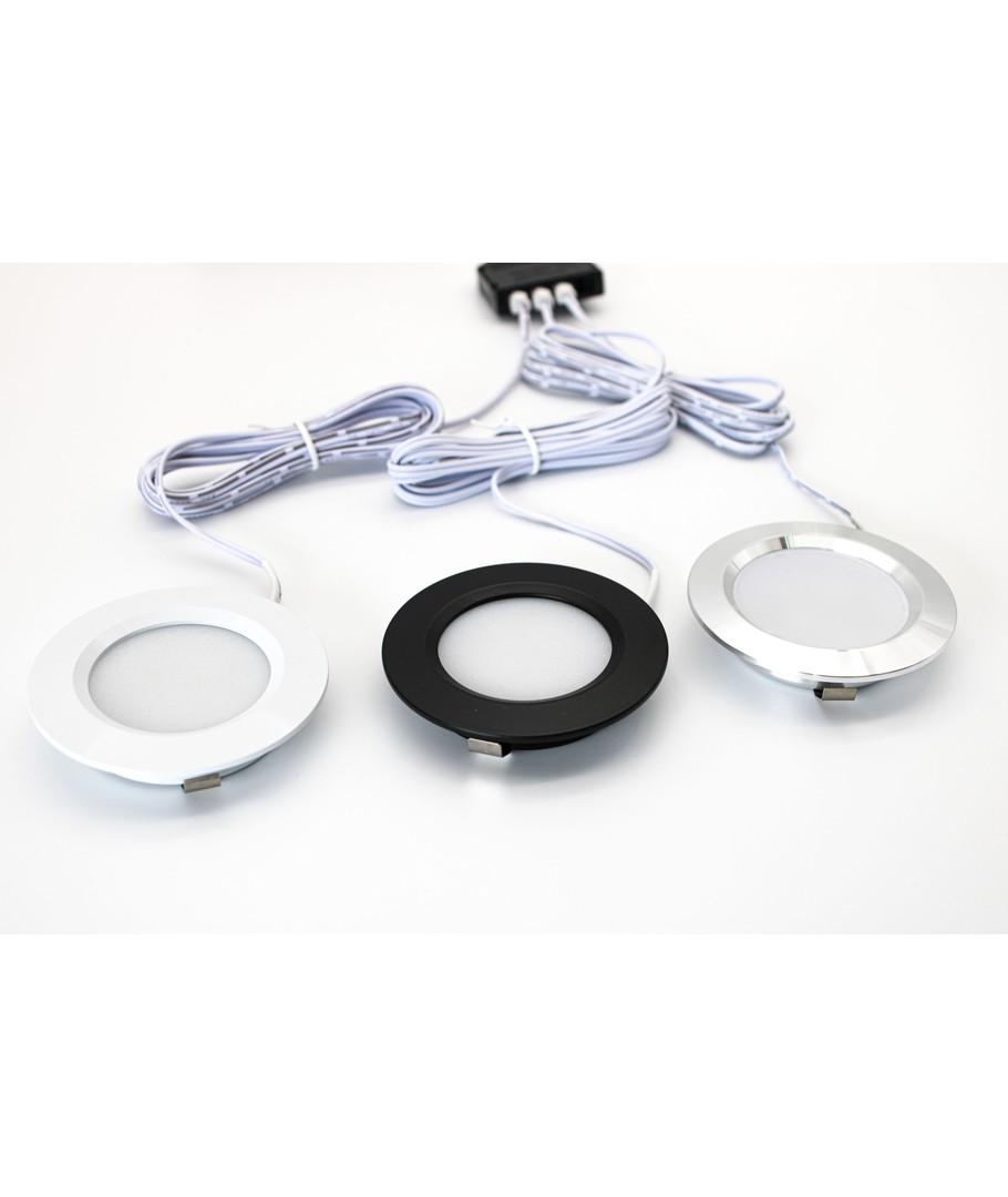 Met deze set krijgt u 3 stuks Reco68 meubelspots in zwart, evenals een dimbare 30W voeding, met ruimte voor 10 meubelspots.