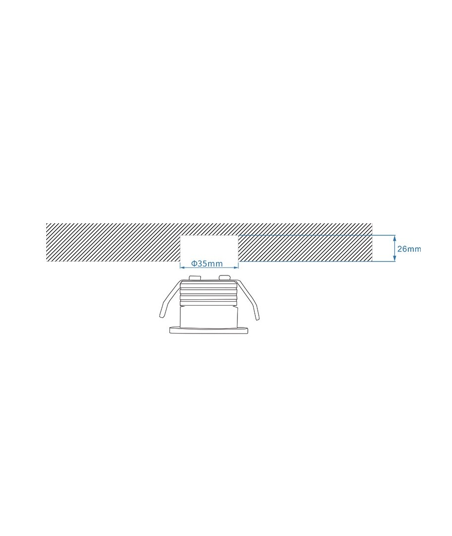 De afmetingen van het spotlicht zijn 28 x Ø38 mm, en het past perfect in een gat van 35 mm. Met een IP44-classificatie is deze meubelspot bestand tegen vochtige lucht en waterdruppels, waardoor hij geschikt is voor badkamers en keukens.