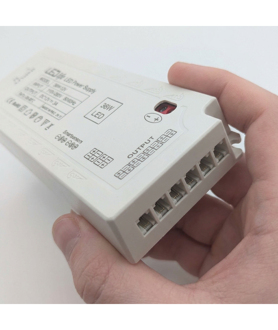 Met deze voeding krijgt u een compacte en krachtige oplossing, speciaal ontworpen om uw LED-meubelspots van stroom te voorzien. Het is ideaal voor degenen die een betrouwbare verbinding willen tussen hun 230V voeding en LED-spots die 12V vereisen. Met een vermogen van 36W kan het apparaat moeiteloos tot 6 afzonderlijk aangesloten spots aansturen.