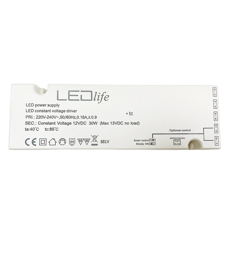 LEDlife dimbare meubelspot voeding 30W, ontworpen voor Sono en Reco meubelspots. Met deze voeding kunt u eenvoudig tot 5 meubelspots bedienen met de meegeleverde afstandsbediening en zo de perfecte sfeer in uw huis creëren.
