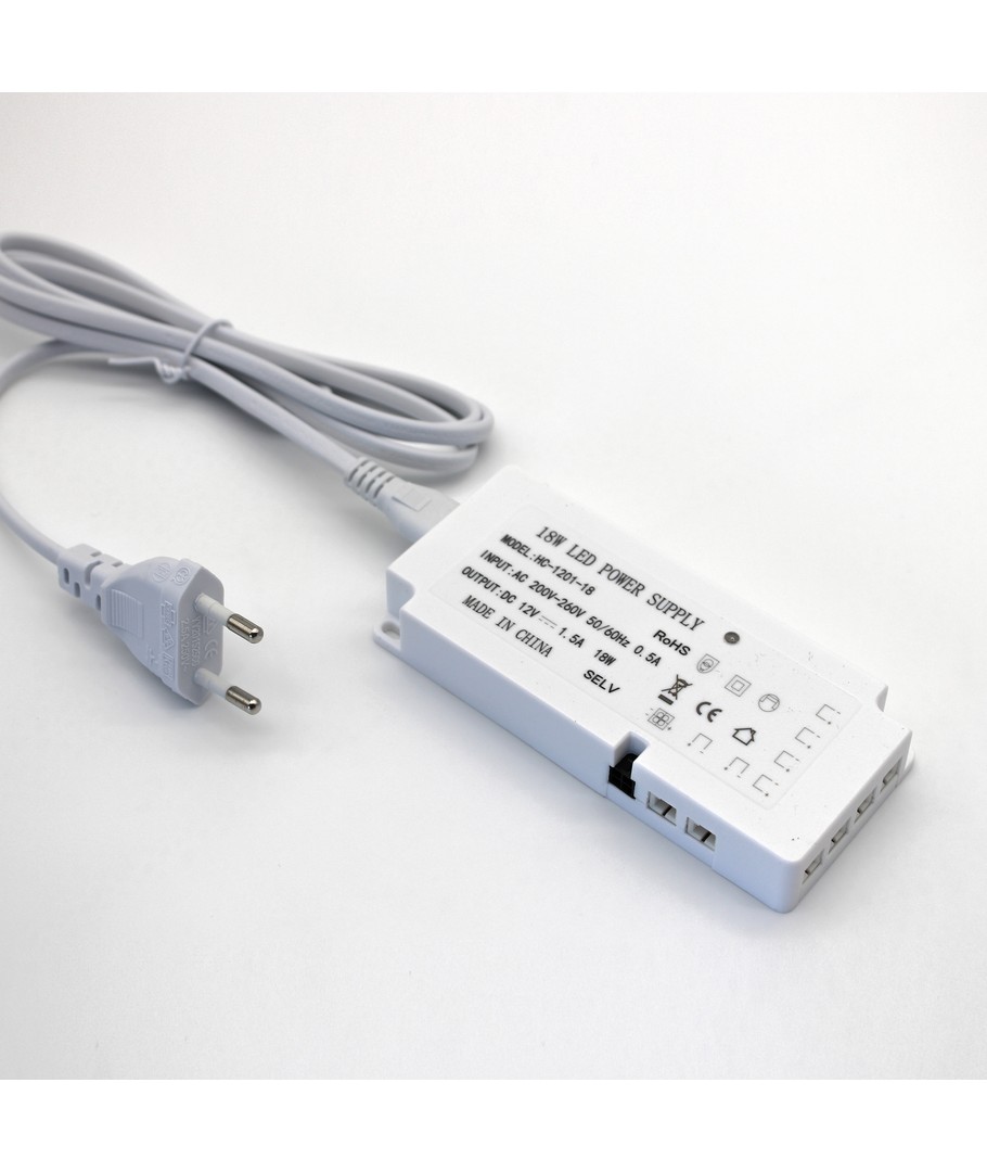 De voeding heeft de afmetingen: 120x55x20mm en neemt daardoor bijna geen ruimte in beslag. De voeding kan eenvoudig worden weggewerkt bovenop bovenkasten e.d.