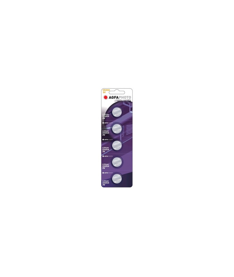 5 stuks CR2016 knoopcelbatterijen van AgfaPhoto.Wordt gebruikt voor onder andere speelgoed, rekenmachines, autosleutels of afstandsbedieningen.
