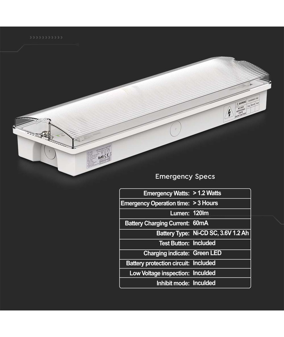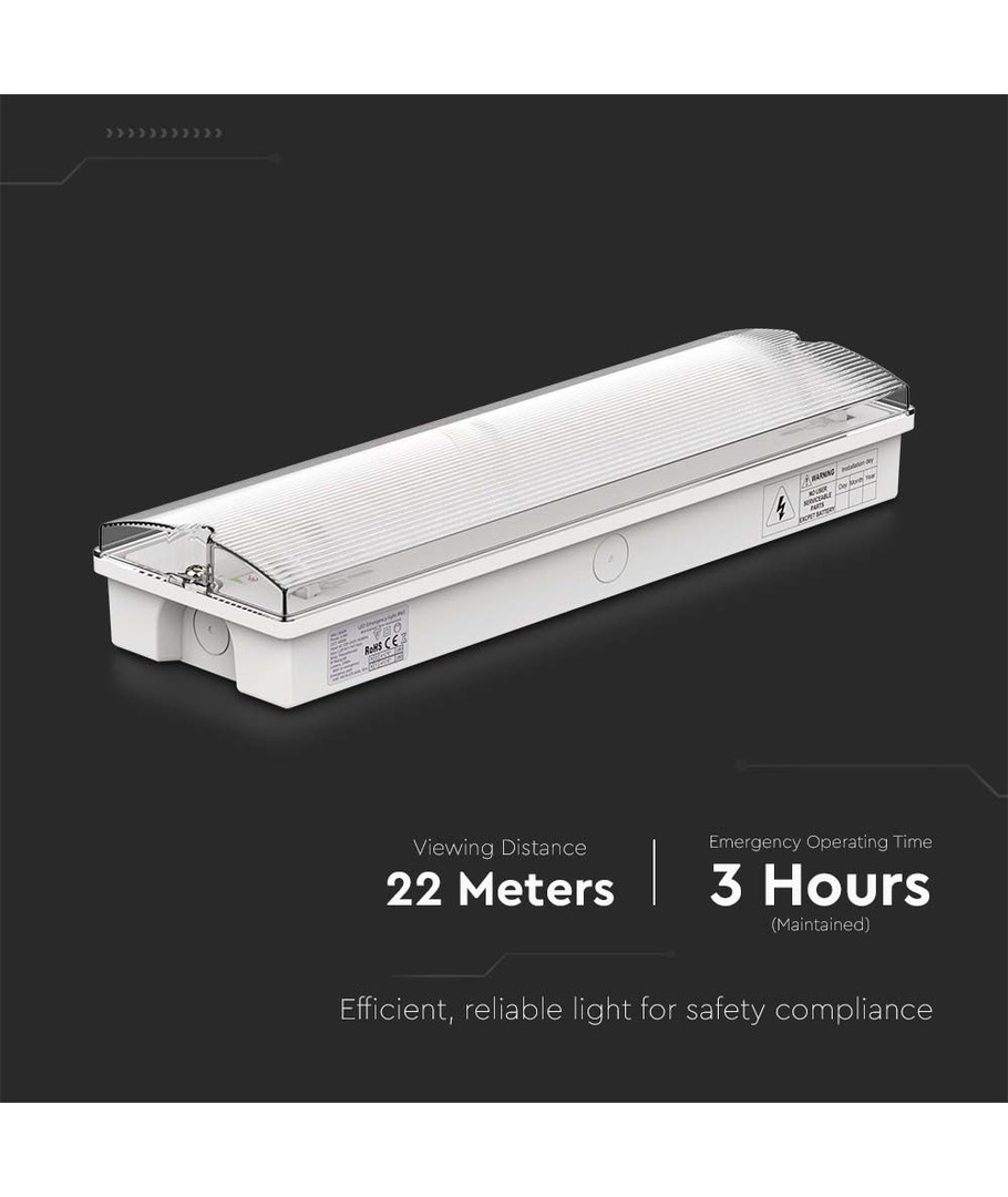 Ervaar betrouwbaarheid en veiligheid met onze noodverlichtingsoplossing, die ook fungeert als een Exit bord. Met een vermogen van 3W en een inbegrepen batterij, bent u verzekerd van een krachtige en duurzame oplossing die ideaal is voor zowel binnen- als buitenomgevingen.