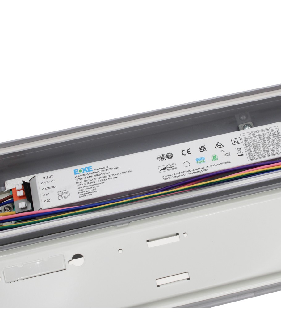 Deze armatuur is ideaal voor zowel binnen- als buitengebruik, dankzij de IP65 beschermingsgraad, die het bestand maakt tegen waterdruppels en regen. Met een vermogen van 40W en aansluiting op een 230V voeding, levert het een lichtsterkte van 5100 lumen en heeft het een spreiding van 120 graden. Dit zorgt voor een gelijkmatige verdeling van het licht in de gehele ruimte.