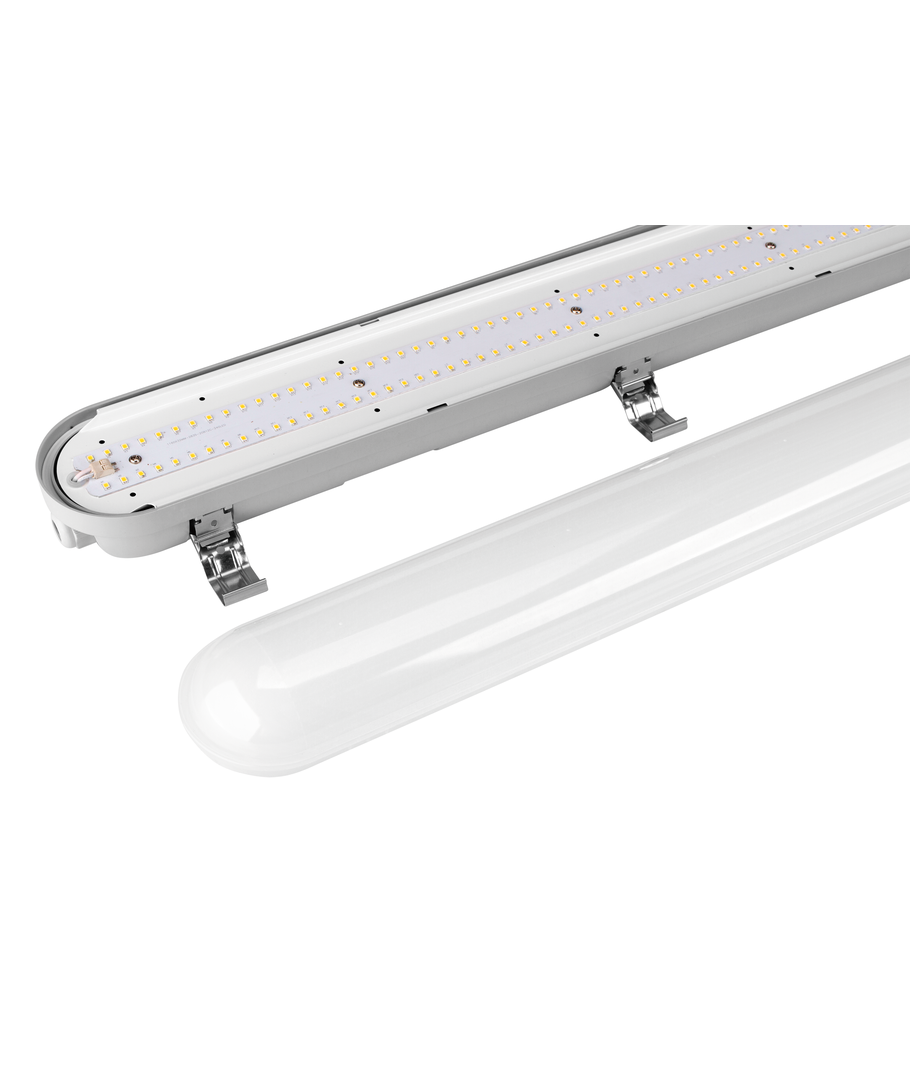 Het armatuur levert een aangenaam, uniform licht met hoge kleurweergave (RA90), wat zorgt voor een correcte kleurwaarneming en een visueel comfortabele werkomgeving. Met IP65 is het armatuur ideaal voor zowel industrie, werkplaatsen, productiehallen, parkeergarages als gebieden met stof, vocht en vuil.