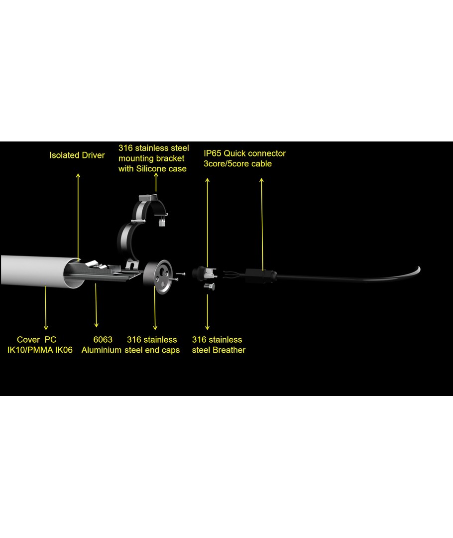 RA90 150 cm IP69K goedgekeurd LED armatuur met ingebouwde lichtbron.
