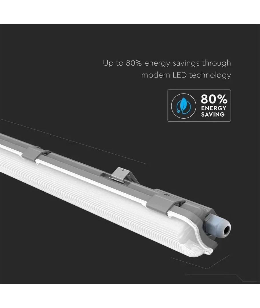 De geïntegreerde lichtbron zorgt voor een probleemloze installatie en onderhoud, waardoor de V-Tac 120 cm armatuur een praktische keuze is voor zowel zakelijk als privégebruik.