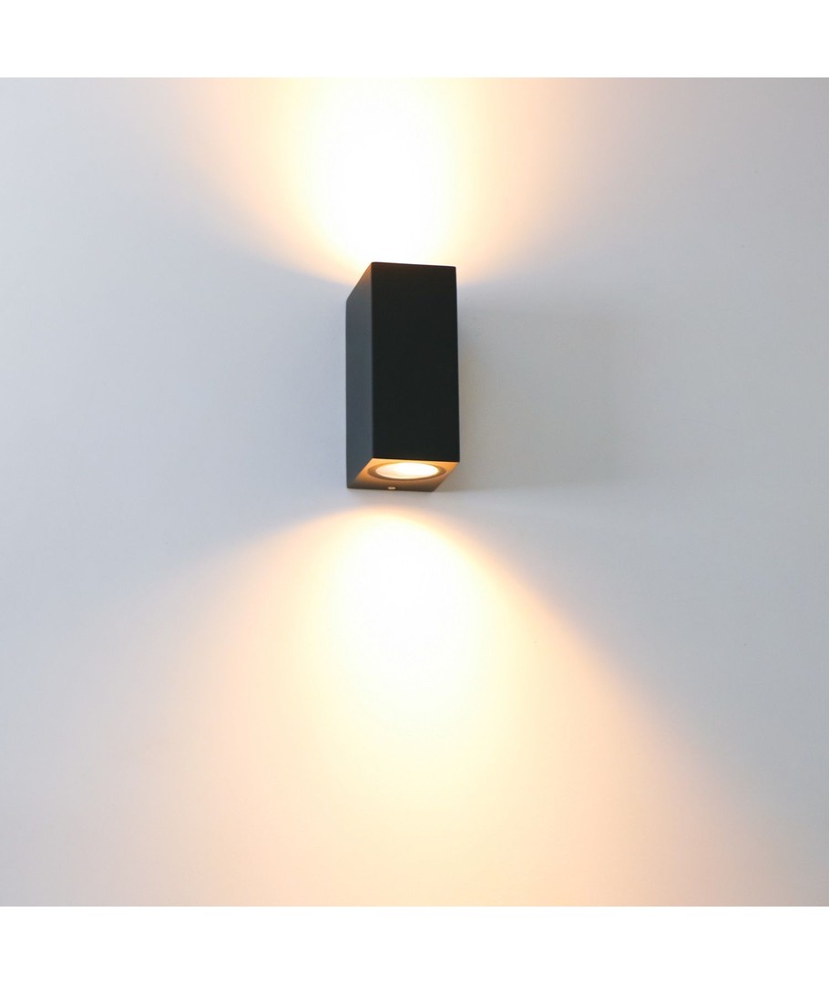 De lamp schijnt zowel naar boven als naar beneden en maakt gebruik van 2 stuks GU10 LED lampen (niet inbegrepen)