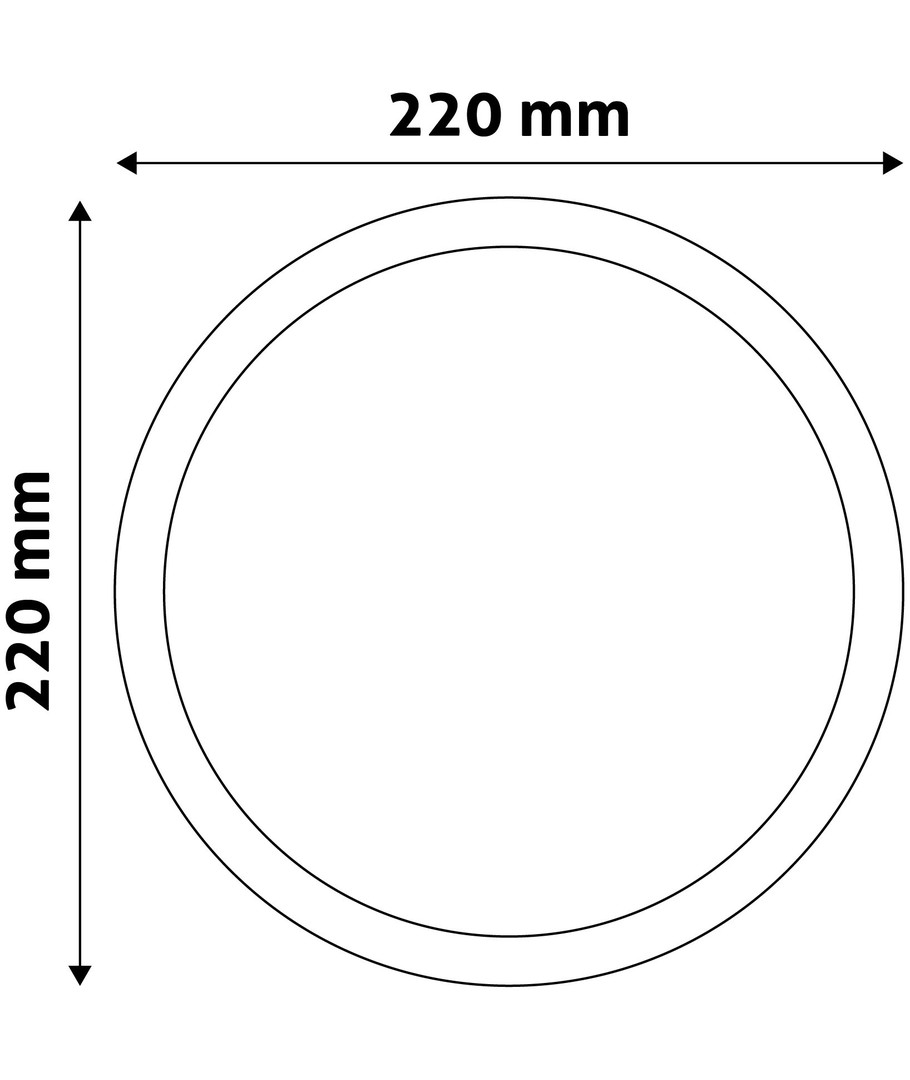 Het paneel is slank met de afmetingen 10 x Ø220 mm, wat zorgt voor een discrete en stijlvolle integratie in het plafond. Houd er echter rekening mee dat het product een IP20-classificatie heeft, wat betekent dat het niet waterbestendig is en daarom alleen in droge binnenomgevingen gebruikt moet worden.