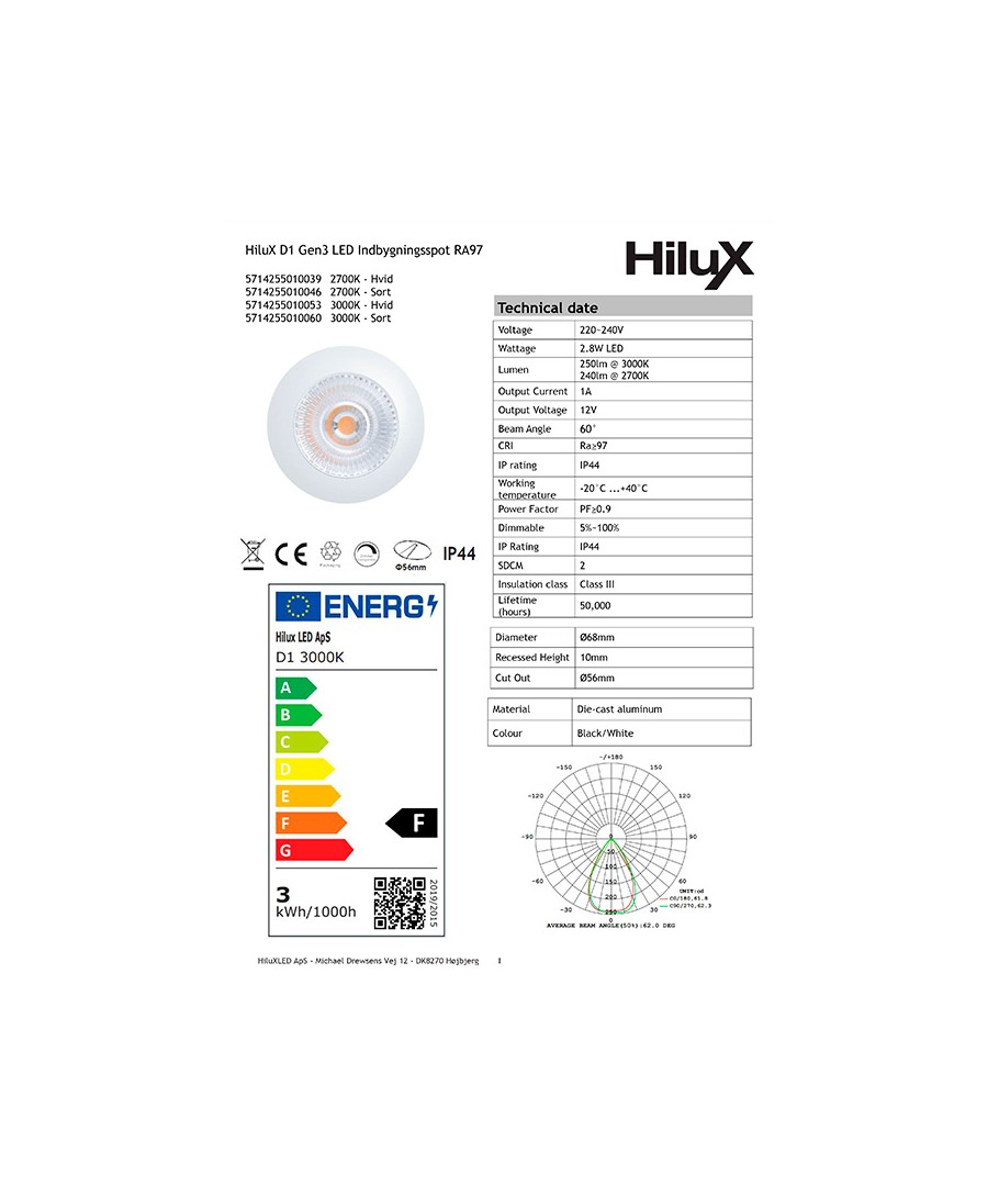 Ontdek de toekomst van verlichting met de baanbrekende HiluX D1 Gen3, een van de meest geavanceerde LED inbouwspots op de markt. Dit model is niet alleen energiezuinig met een vermogen van slechts 2,8W, maar biedt ook een uitzonderlijke lichtkwaliteit die nieuwe normen stelt voor LED-verlichting.