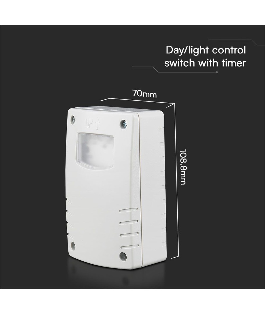 V-Tac schemerschakelaar met timer is een betrouwbare oplossing voor automatische verlichting op basis van de lichtomstandigheden.