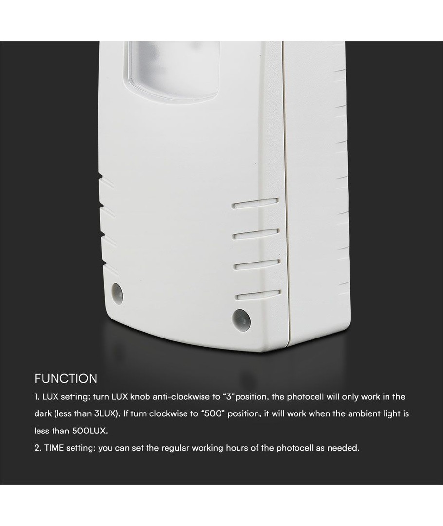 V-Tac schemersensor met timer - IP65, Wit huis, instelbare gevoeligheid, instelbare timer samsung Uitklappen
