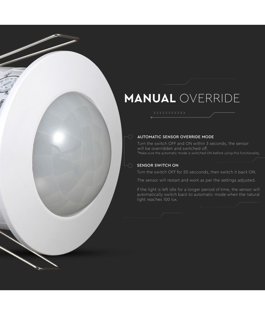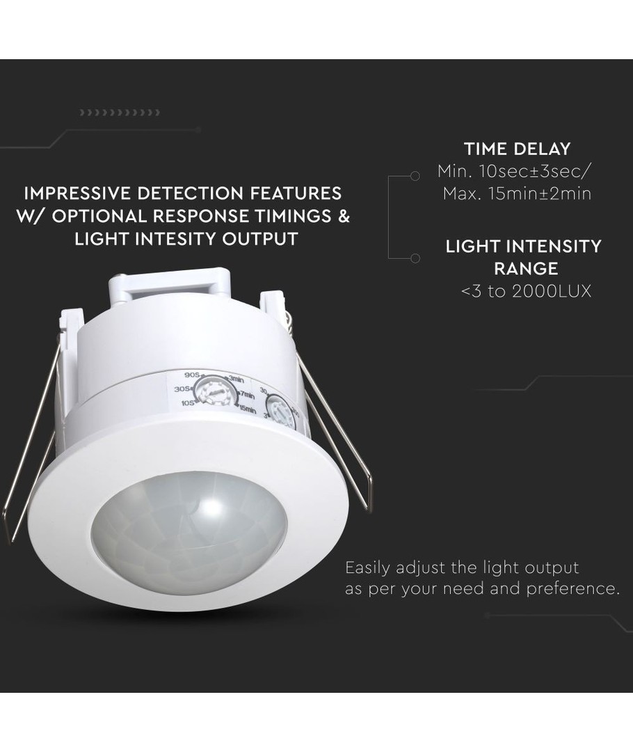 Ervaar het gemak en de efficiëntie met een V-Tac bewegingssensor voor inbouw, speciaal ontworpen om te integreren in moderne LED-verlichtingssystemen. Met zijn discrete en strakke witte afwerking past hij perfect in elke binnenomgeving.