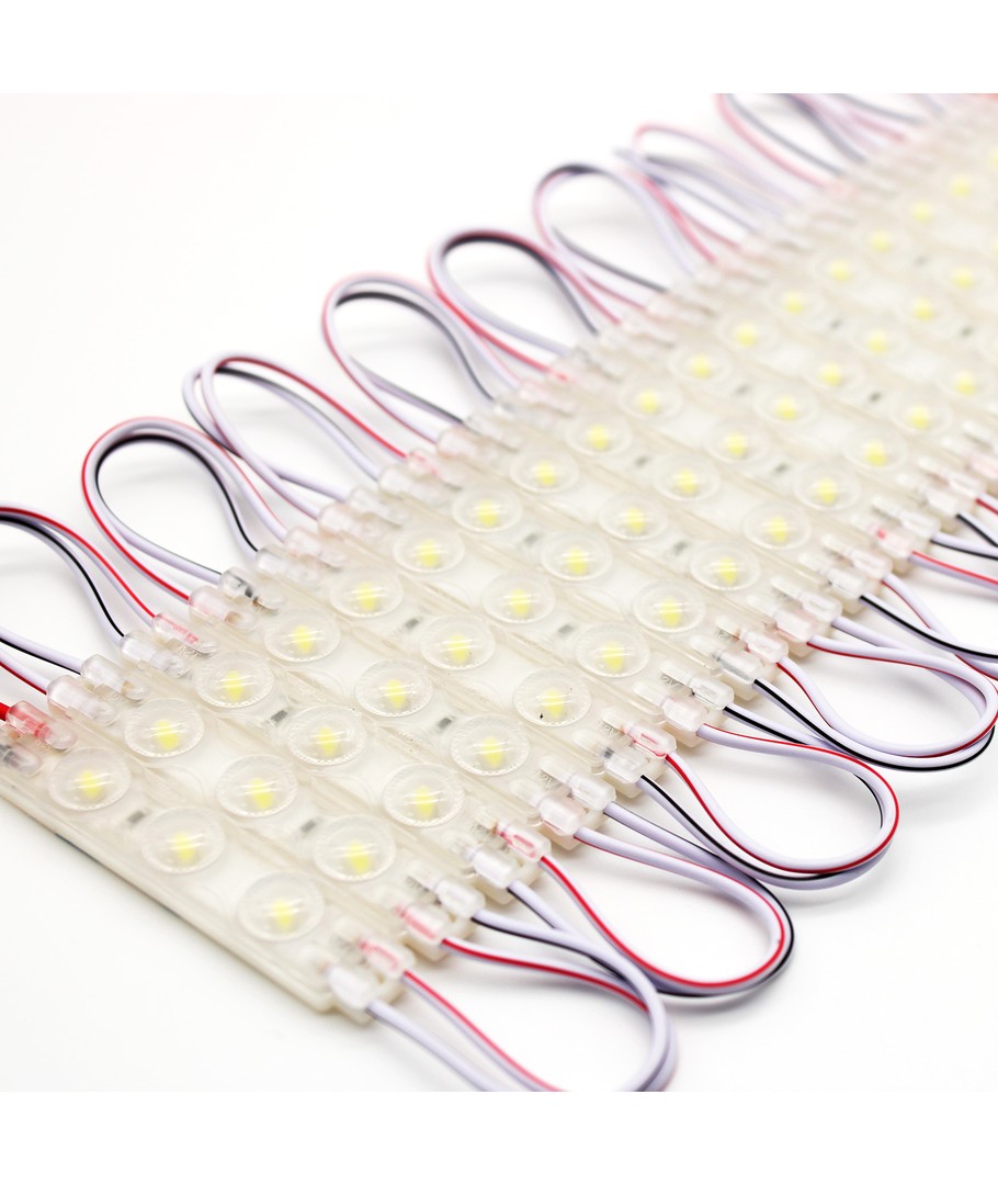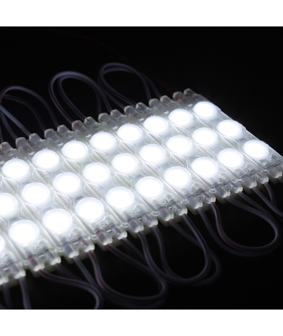 Het waterdichte koud wit LED module is de ideale keuze voor zowel borden als speciale toepassingen. Met een stroomverbruik van slechts 1,1W per module biedt deze LED-oplossing een energiezuinige verlichting die elke ruimte kan transformeren met zijn stralende glans.