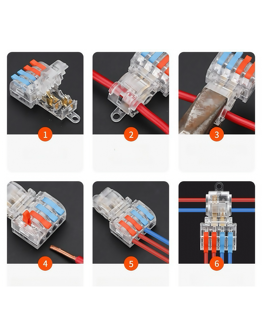 Ze hebben een praktisch aansluitingssysteem met een oranje/blauwe kantelklep, waardoor het gemakkelijk is om de zachte geleiders in de gaten te krijgen.