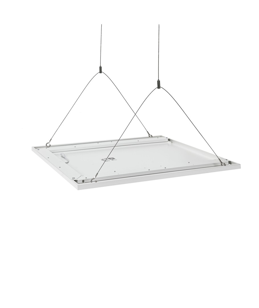 Deze draadset is ontworpen om een eenvoudige en veilige ophanging van uw LED-panelen te bieden, terwijl het een moderne esthetiek aan uw ruimte toevoegt.