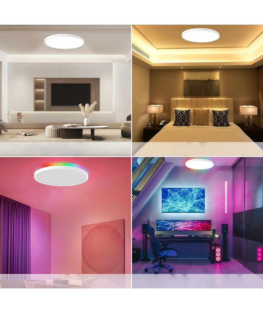 Transformeer de ruimte in een stralend meesterwerk met de ultieme CCT plafondlamp met RGBIC achtergrondverlichting – ontworpen voor de echte RGB-liefhebbers!