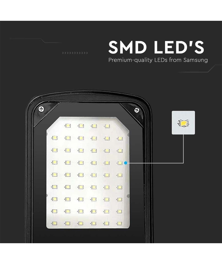 De geïntegreerde lichtbron in de V-Tac 30W LED straatlamp zorgt voor maximale efficiëntie en minimaal onderhoud. Deze functie betekent dat u zich geen zorgen hoeft te maken over het vervangen van lampen gedurende de levensduur van de lamp.