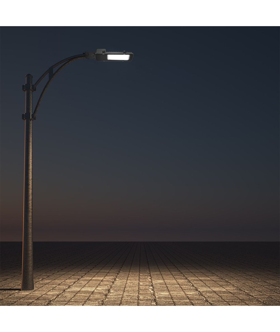 Geïntegreerd met een vaste lichtbron is deze LED-straatlamp de perfecte oplossing voor optimale verlichting gedurende de hele nacht, ongeacht de weersomstandigheden.