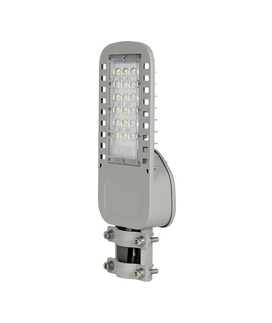 Deze V-Tac 30W LED straatlamp biedt een lichtsterkte van 4050 lumen en een brede spreiding van 110 graden, wat zorgt voor een gelijkmatige en uitgebreide verlichting van elk buitengebied. Hij is perfect voor zowel openbare als particuliere projecten waar een betrouwbare en energiezuinige straatlamp nodig is.