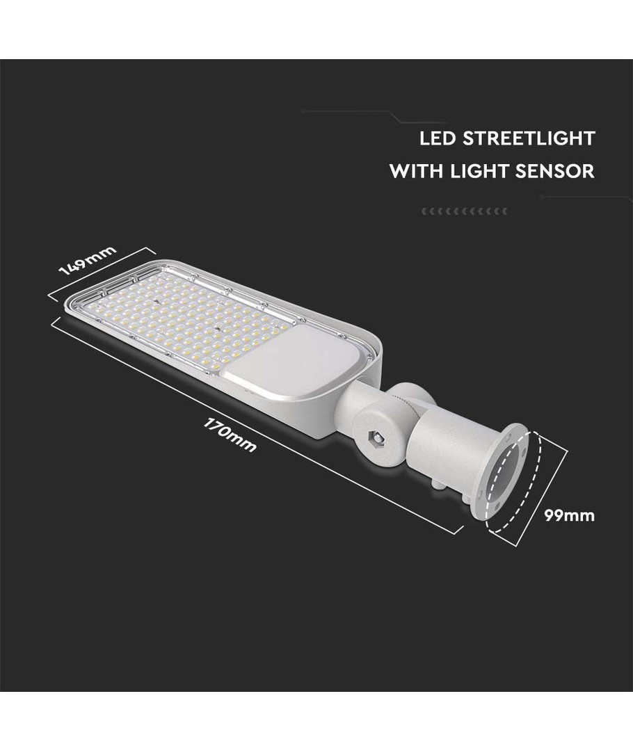 50W straatlamp met ingebouwde schemersensor, zodat het licht automatisch aan- en uitgaat.