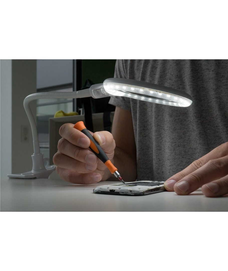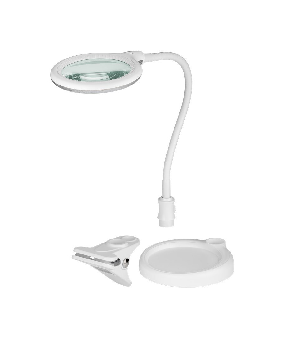 Ervaar de perfecte combinatie van functionaliteit en stijl met deze LED loeplamp. Ontworpen als een bureaulamp, biedt hij flexibiliteit met zowel klem als voet, zodat hij aan elk werkgebied kan worden aangepast.