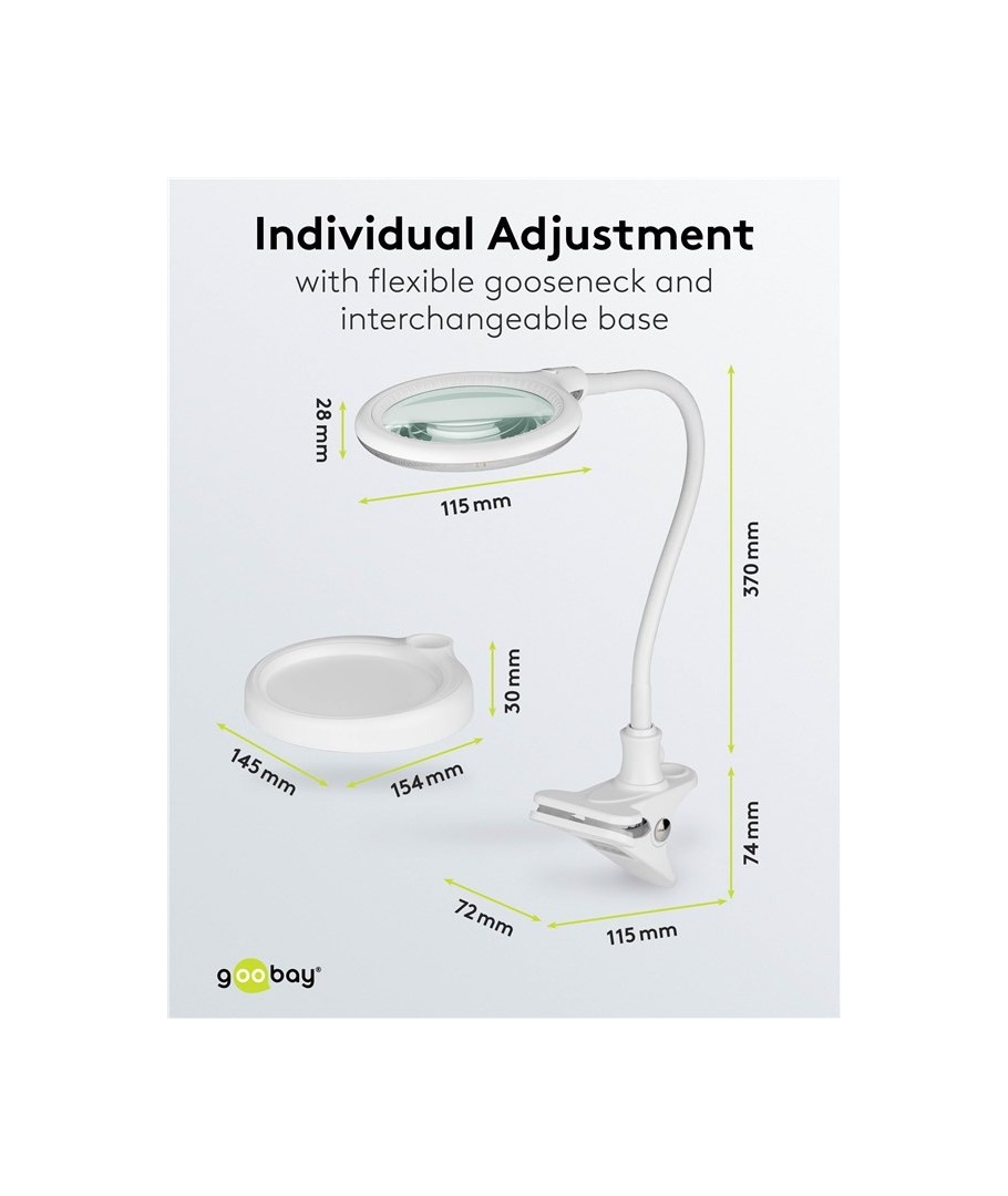De afmetingen van de lamp van 370 x Ø115 mm maken hem compact genoeg om op elk oppervlak te passen, terwijl het zwanenhalsontwerp verstelbaarheid biedt, zodat je het licht altijd hebt waar je het nodig hebt. Met klem en voet inbegrepen kan de lamp eenvoudig worden bevestigd aan bureaus, tafels of andere oppervlakken, wat hem veelzijdig maakt voor verschillende opstellingen.