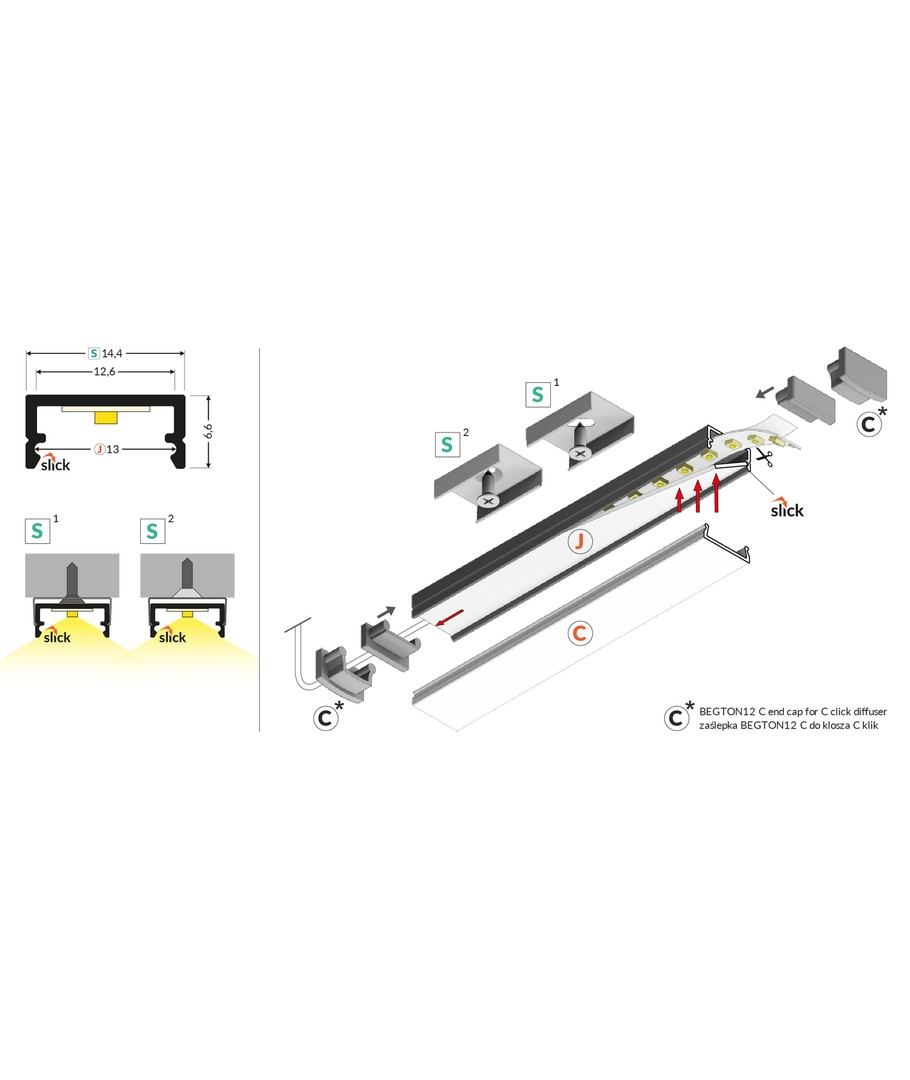 1m aluminium profiel BEGTON12 J/S is een veelzijdige LED-rail voor opbouw, ideaal om LED-strips te beschermen en te presenteren.