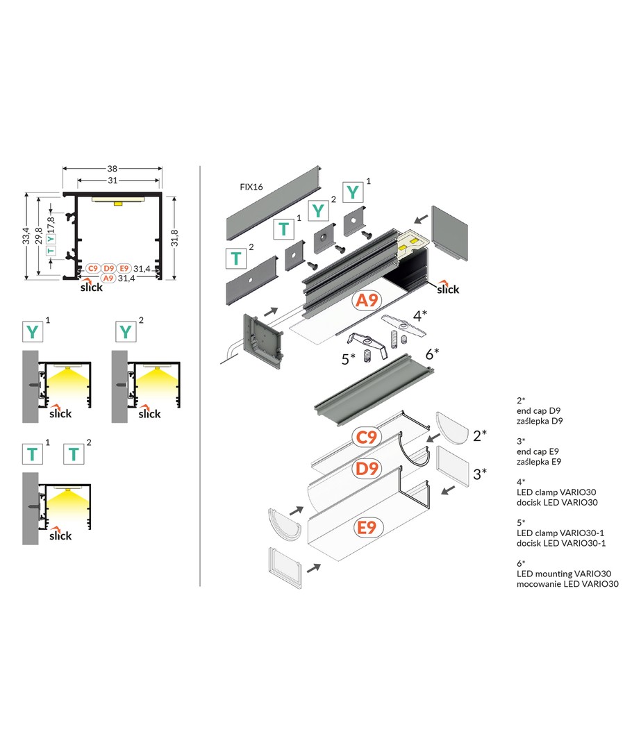 1m aluminium profiel VARIO30-03 ACDE-9/TY
