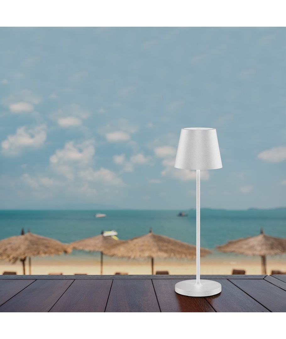 Uitgerust met een IP54 classificatie is deze tafellamp bestand tegen vochtige lucht en spatwater, waardoor hij ideaal is voor het terras of de tuin. Je hoeft je geen zorgen te maken over de grillen van het weer, want de lamp is ontworpen om zowel binnen- als buitenomgevingen te weerstaan.