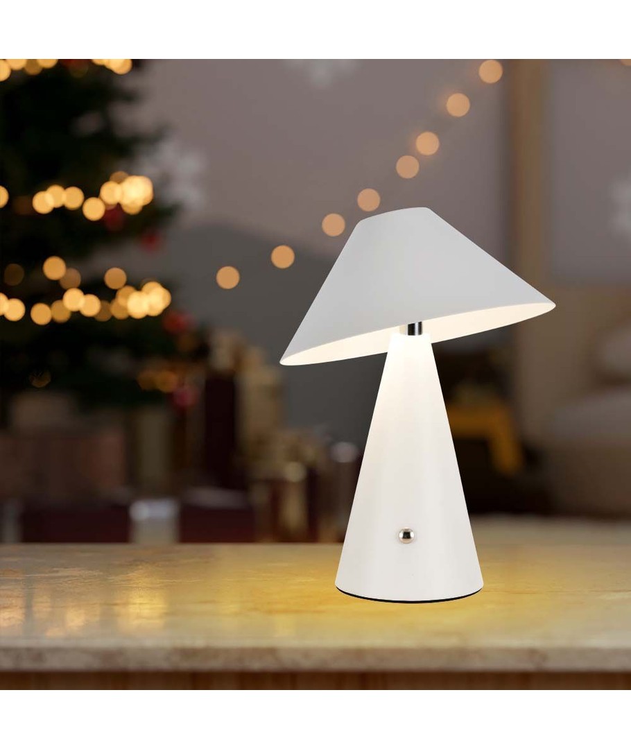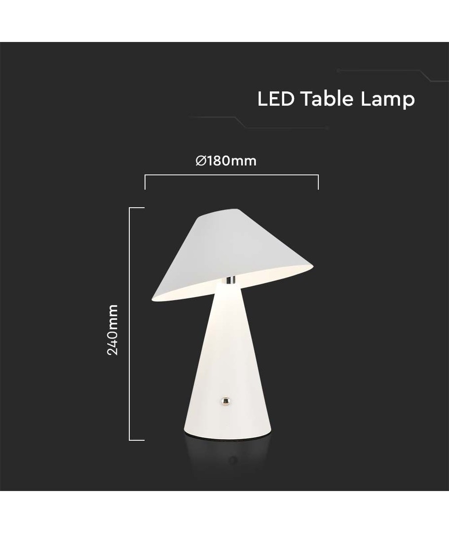 De afmetingen van de tafellamp zijn 240 x Ø180 mm, waardoor hij compact is en eenvoudig op zowel kleine als grote oppervlakken geplaatst kan worden. De oplaadbare functie van de lamp betekent dat hij draadloos gebruikt kan worden, wat de flexibiliteit en het gebruiksgemak in uw ruimte vergroot.