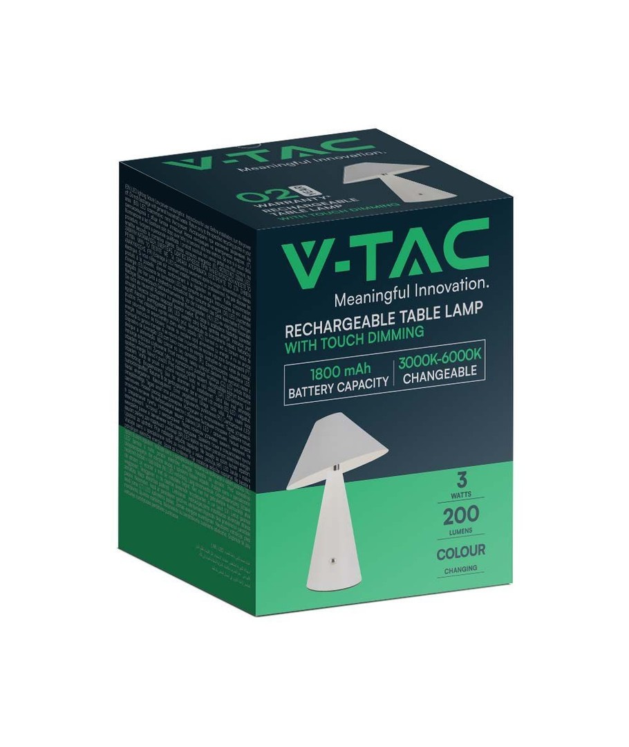 Al met al biedt deze oplaadbare 3-in-1 tafellamp van V-Tac stijlvolle en effectieve verlichting voor elke binnenruimte. De combinatie van moderne functies zoals touch dimming en brede lichtverdeling maakt deze lamp tot een onmisbaar element in elk huis waar zowel design als functionaliteit hoog in het vaandel staan. Ervaar het gemak en de schoonheid van deze uitstekende verlichtingsoplossing.