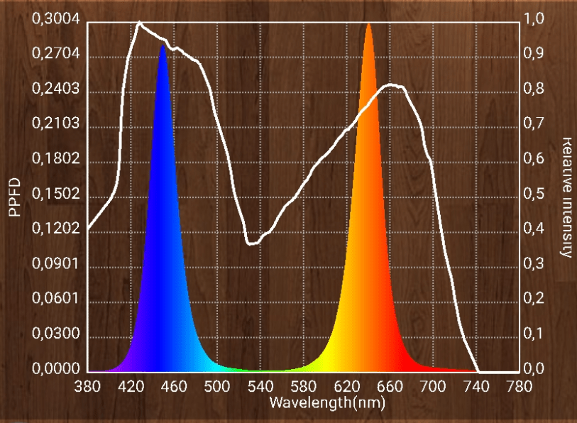 Ons licht is optimaal voor de chlorofyl B, chlorofyl A, luteïne, B-caroteen, zeaxanthine en lycopeen van planten.