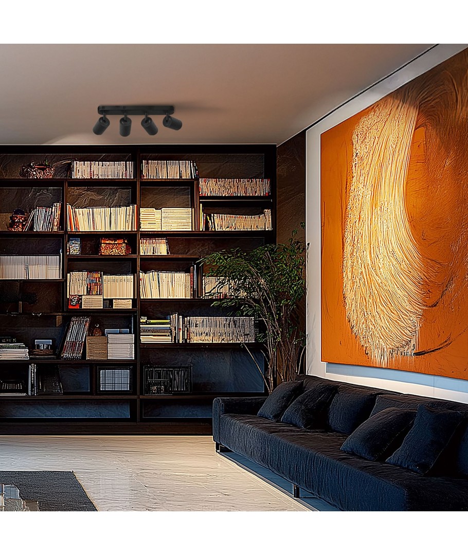 Kortom, deze plafondlamp met 4 spots is de perfecte combinatie van stijl en functionaliteit, die uw interieur verbetert met een persoonlijk en gericht lichtontwerp.