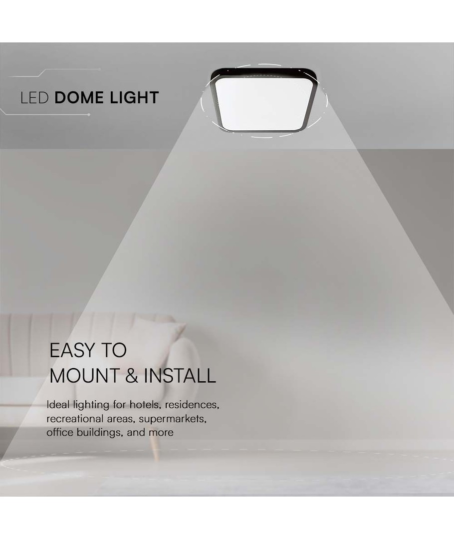 De plafondlamp heeft een elegante zwarte rand en een compact ontwerp met afmetingen van 420 x 65 x 420 mm, die perfect passen in de meeste moderne interieurs. Met een IP44-classificatie is de lamp beschermd tegen vocht en spatwater, waardoor hij geschikt is voor gebruik in badkamers en keukens.