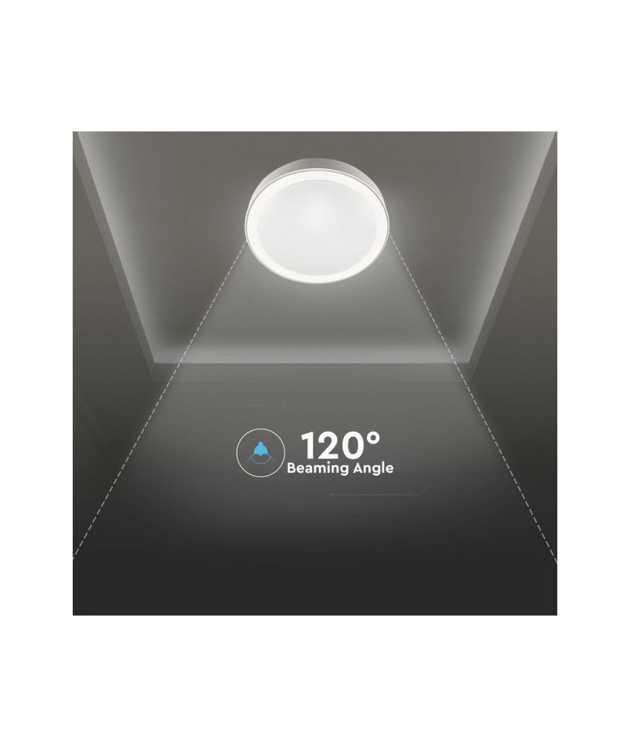 De plafondlamp is ontworpen om te worden aangesloten op een 230V voeding, wat de installatie eenvoudig en probleemloos maakt. Met een vermogen van 40W biedt de lamp een indrukwekkende lichtsterkte van 2800 lumen. De brede stralingshoek van 120 graden zorgt voor een gelijkmatige lichtverdeling, ideaal om zowel kleine als grotere ruimtes te verlichten.