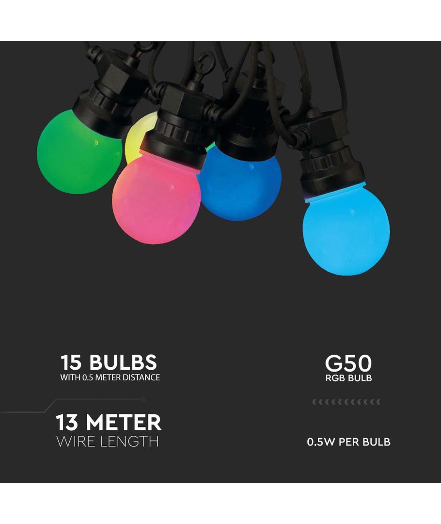 Geef je huis, tuin of feest een kleurrijke boost met deze veelzijdige 13m LED lichtketting. Uitgerust met 15 RGB lampjes, biedt de lichtketting onbeperkte mogelijkheden voor lichtinstellingen die aan elke gelegenheid kunnen worden aangepast.