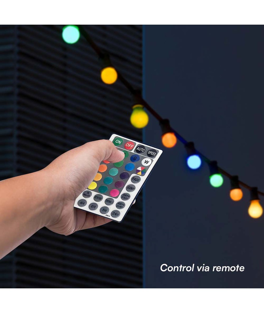 De LED-ketting wordt geleverd met een afstandsbediening, waarmee je gemakkelijk en snel kunt schakelen tussen verschillende lichtinstellingen. Creëer alles van een gezellige winteravond tot een levendig zomerfeest met slechts één druk op de knop.