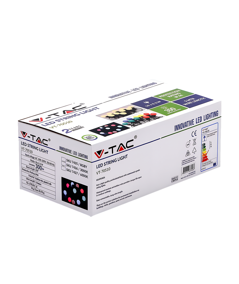 Met de V-Tac LED-lichtsnoer krijgt u niet alleen een praktische verlichtingsoplossing, maar ook een decoratief detail dat elke locatie kan transformeren tot een aangename verblijfsplek. Of u nu een warme verlichting wilt toevoegen aan uw terras in de zomer of een feestelijke sfeer binnen wilt creëren, deze lichtsnoer voldoet aan uw wensen.