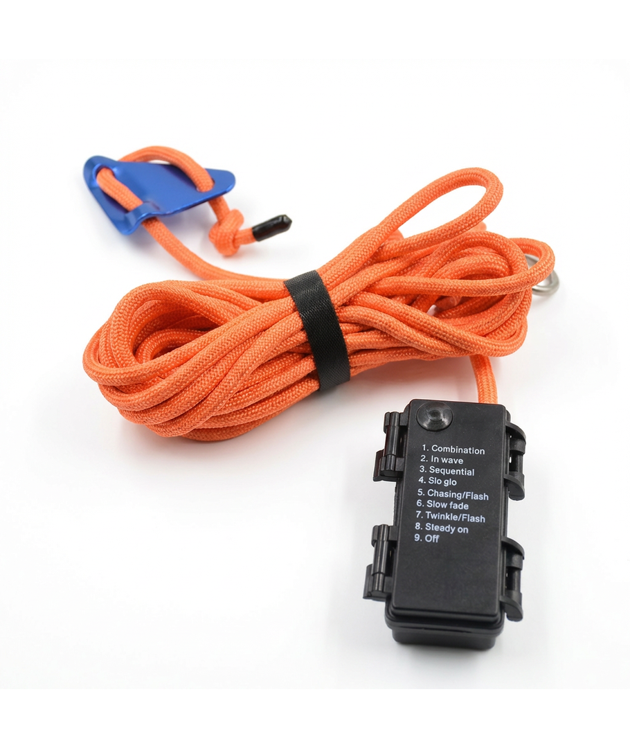 Oranje touw met RGB-verlichting is geschikt voor zowel praktische als decoratieve doeleinden, perfect voor buitenactiviteiten of creatieve projecten.