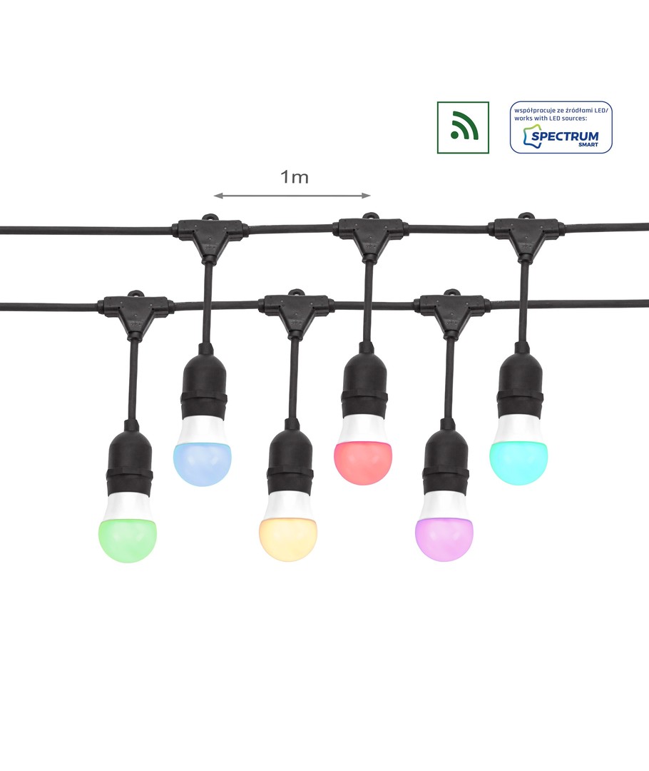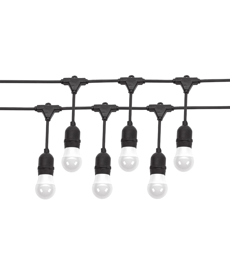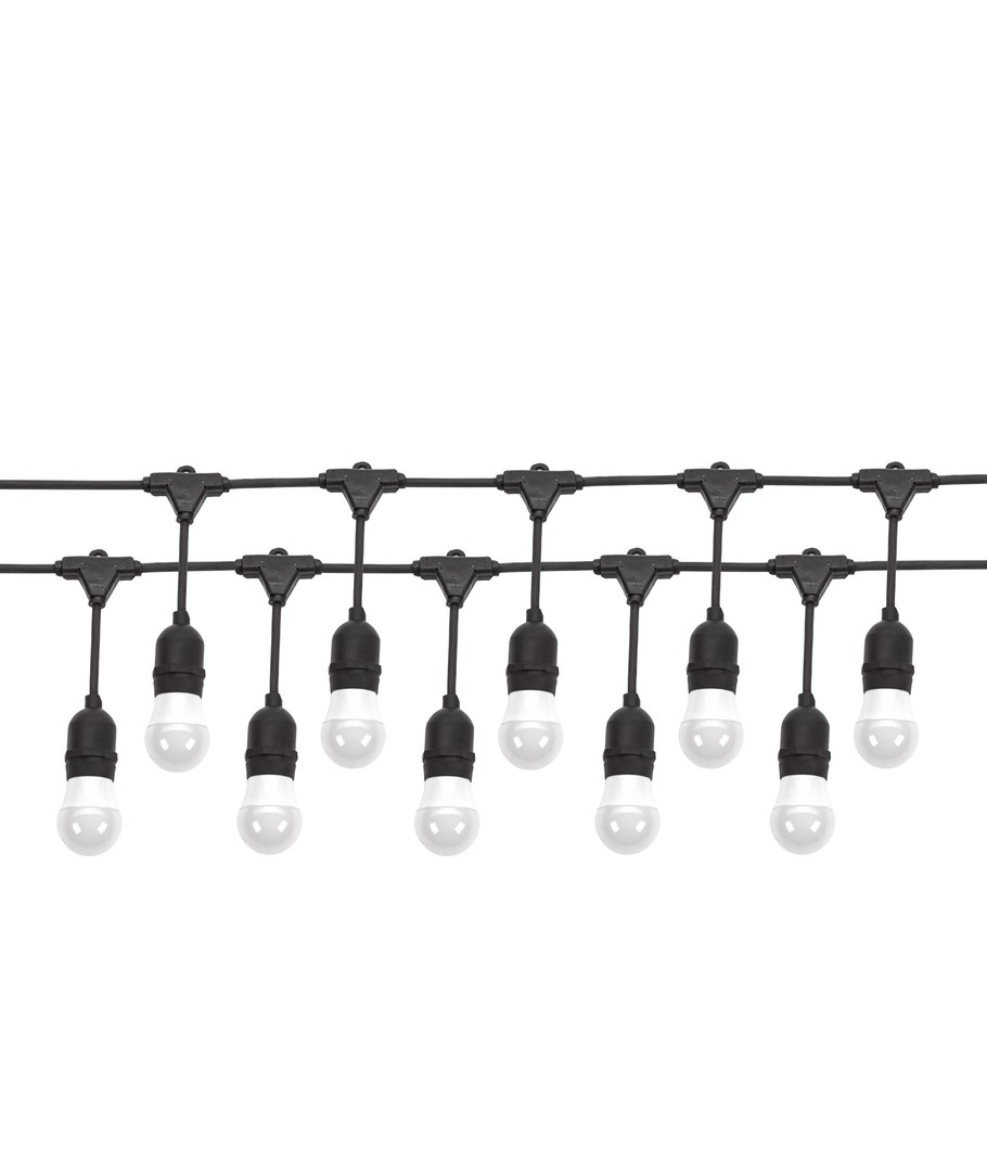 Creëer een sfeervolle ambiance zowel binnen als buiten met onze Spectrum lichtsnoer voor 10 stuks E27 lampen. Deze 10 meter lange lichtsnoer is IP44-geclassificeerd, wat betekent dat hij zonder zorgen buiten gebruikt kan worden.