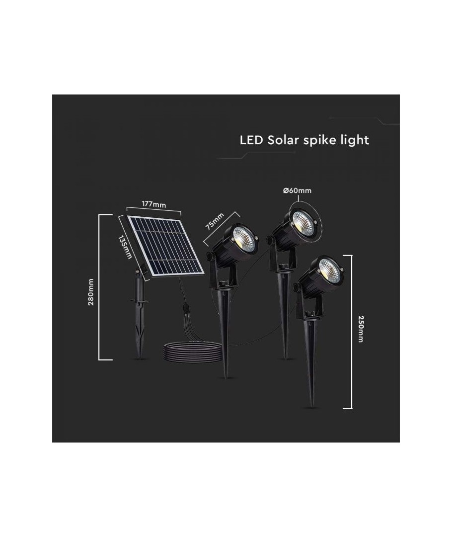 Afmetingen zonnepaneel: 177x135 mmDeze zonne-energie tuinlampen van V-Tac zijn de perfecte combinatie van stijlvol design en efficiënte verlichting. Met hun zwarte afwerking en praktische spies integreren de lampen zich moeiteloos in elke tuin, terwijl ze een sterke en betrouwbare lichtbron bieden.