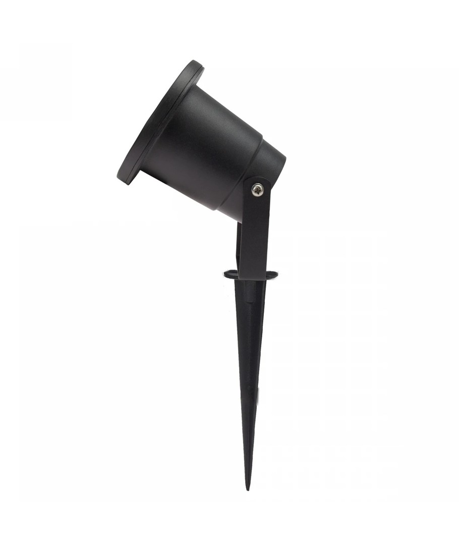 Aansluiting op een standaard 230V voeding, wat de installatie eenvoudig en rechttoe rechtaan maakt. De meegeleverde pin maakt een gemakkelijke plaatsing in de grond mogelijk, waardoor u de flexibiliteit heeft om het licht naar wens te verplaatsen.