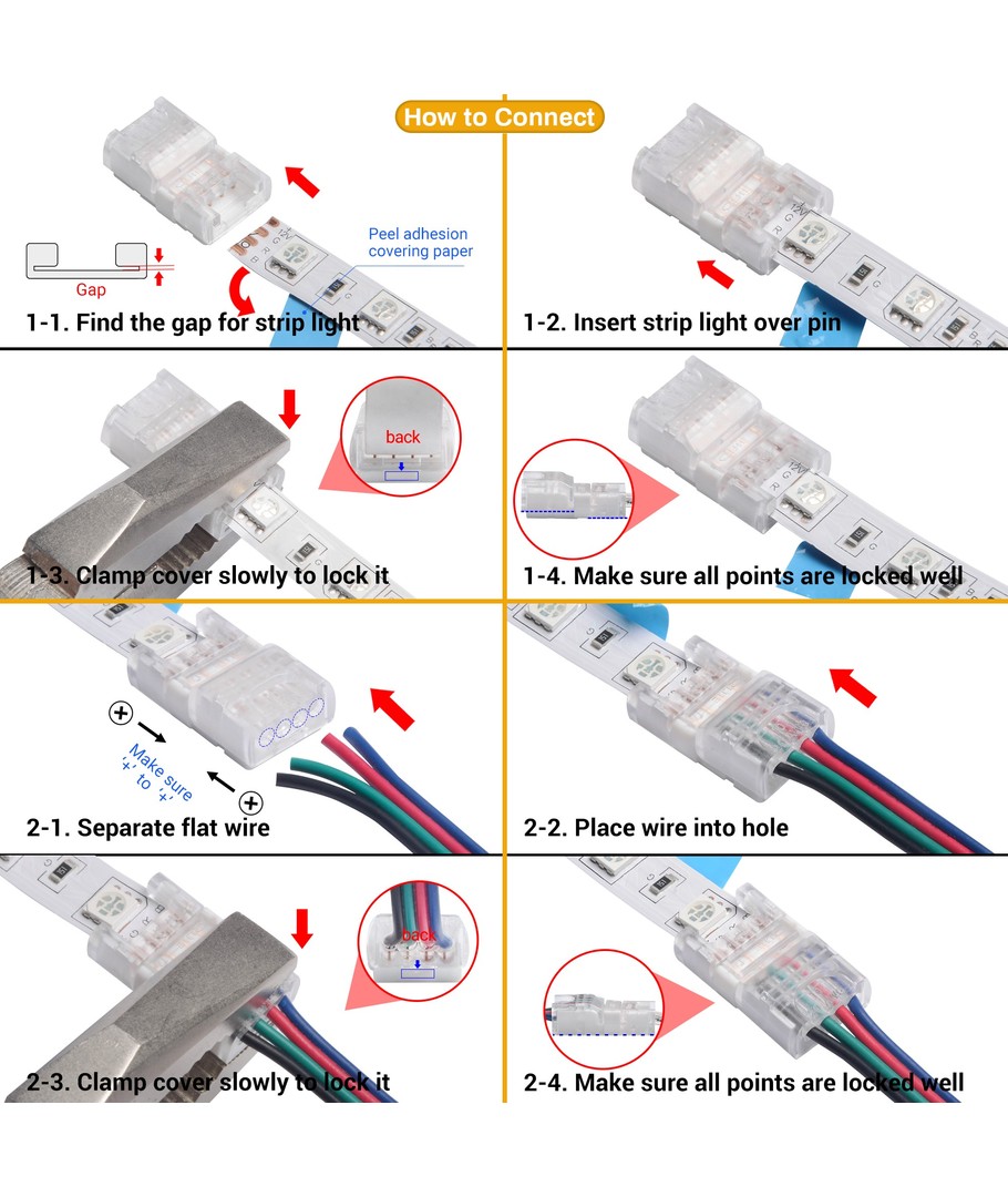Nieuwe startconnector voor losse draden, geschikt voor 10mm brede IP20 RGB LED-strip.