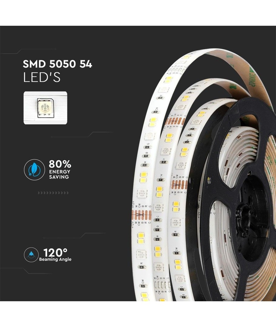 V-Tac 4W/m RGB+CCT LED-stripset is de perfecte keuze om sfeervolle en flexibele verlichting te creëren. Deze set bevat alles wat je nodig hebt om aan de slag te gaan met het creëren van een unieke sfeer in je huis of bedrijf.