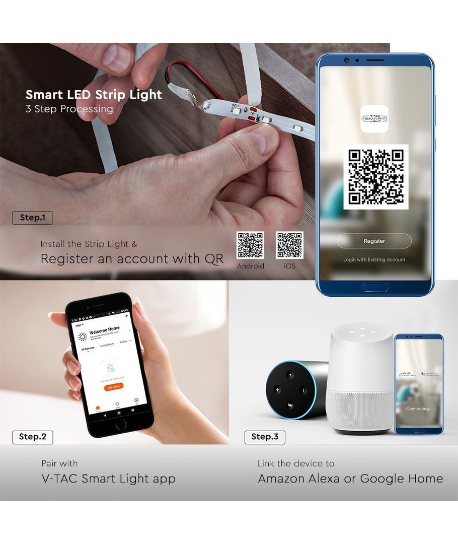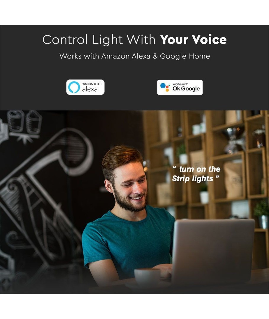 Kies voor V-Tac LED-strips om een harmonieuze balans te bereiken tussen stijl, functionaliteit en duurzaamheid en geef je ruimte de transformerende lichtbeleving die het verdient.