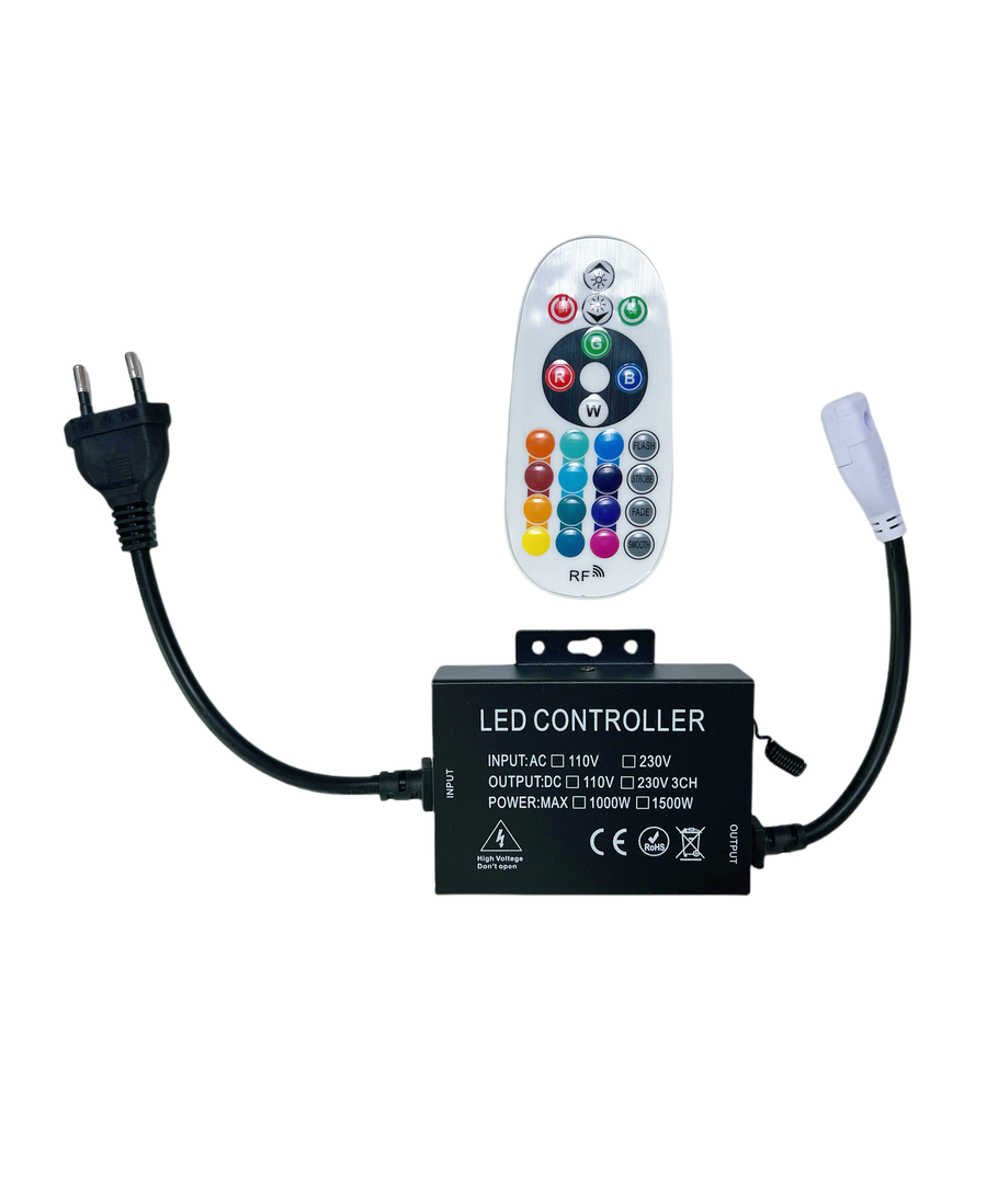 RGB-controller voor 230V RGB Neon flex 16x16 LED-strips die een maximale belasting van 100 meter aankunnen.