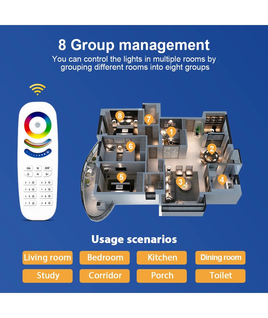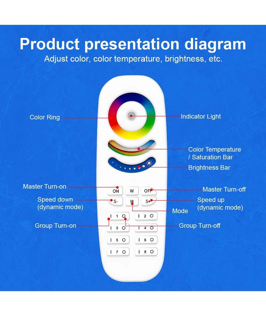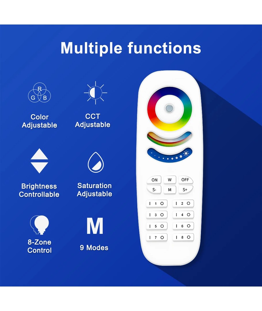 Ervaar de ultieme flexibiliteit en controle met de Gledopto 8 zones RGB+CCT touch afstandsbediening - ontworpen om je een naadloze lichtbeleving te bieden in maximaal 8 zones zonder dat een Zigbee hub nodig is.