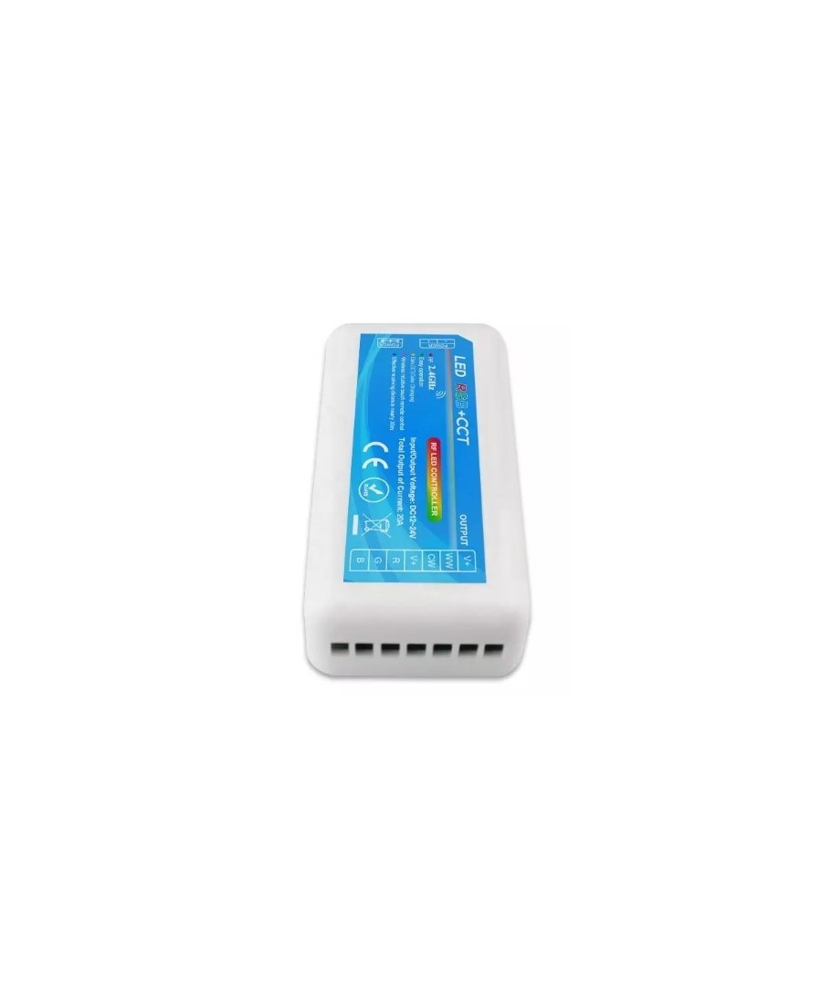 Bedienbaar met RF draadloze afstandsbediening, waarmee traploze aanpassing van kleur inclusief warm wit mogelijk is.