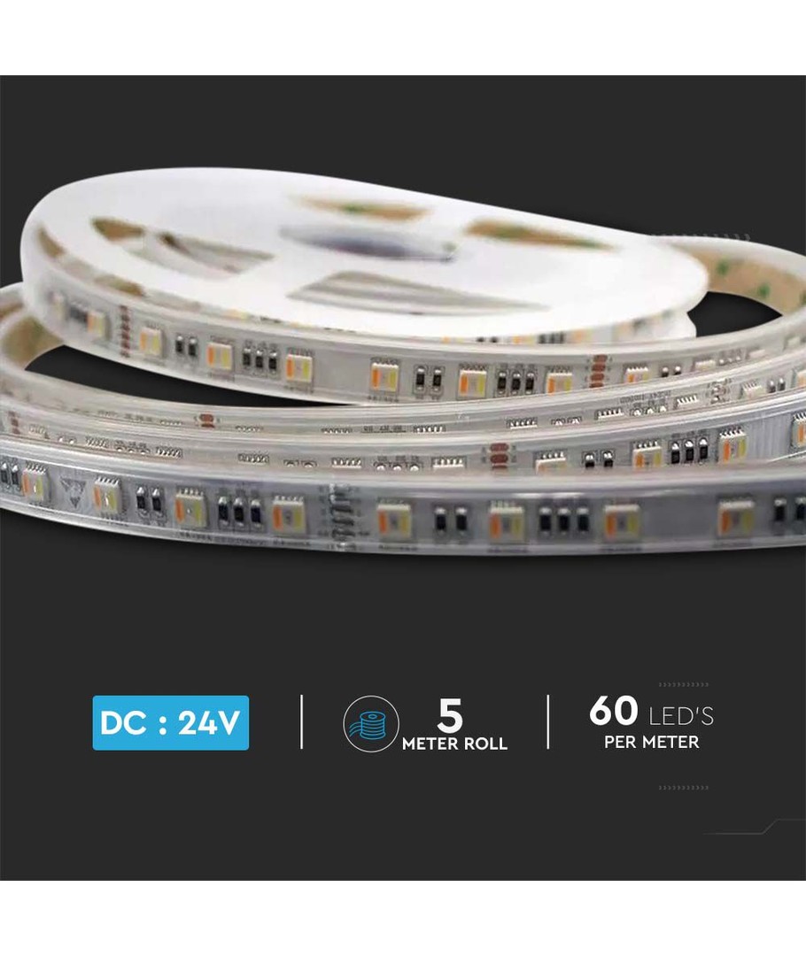 De 5m RGB+CCT 24W/m LED-strip biedt een veelzijdige en sfeervolle verlichtingsoplossing voor zowel binnen- als buitengebruik.